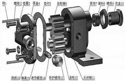 液壓件產(chǎn)成品不允許漏油,但由于種種原因,新出廠的液壓泵在調(diào)試泵站過程中,油溫剛達(dá)到50℃時(shí),從軸頸處往外漏油。從漏油的部位分析,絕大多數(shù)是從低壓腔往外漏,也就是從壓力腔大量滲油到低壓腔(內(nèi)漏)的油,由于系統(tǒng)中有一定的背壓,使低壓油的一部分外漏;也有的液壓元件低壓腔根本不允許回油,如液壓泵的軸伸部位。各類液壓泵從傳動軸伸處向外漏油的情況較普遍,尤其是齒輪泵的軸頸端蓋里的自緊旋轉(zhuǎn)橡膠密封圈。此類結(jié)構(gòu)的自身漏油原因有: